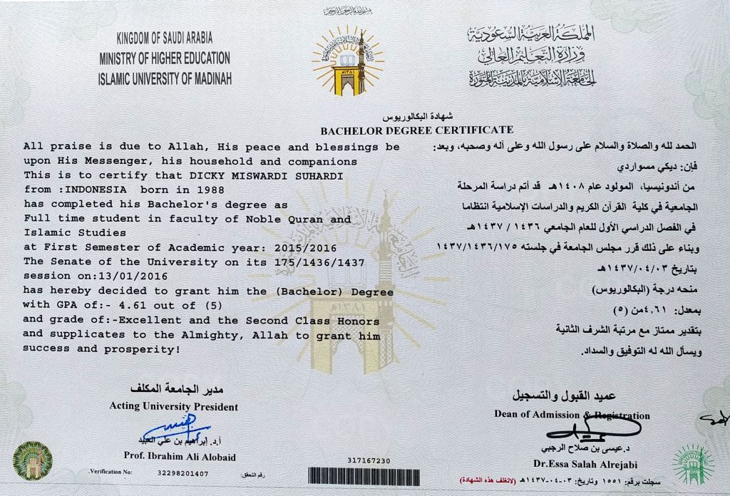 Kunjungi website Universitas Islam Madinah untuk melihat validasi pendidikan beliau di: